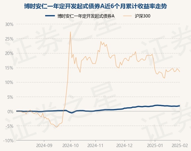 证券之星消息,2月5日,博时安仁一年定开发起式债券A最新单位净值为1.1731元,累计净值为1.3408元,较前一交易日上涨0.05%。历史数据显示该基金近1个月下跌0.16%,近3个月上涨1.62%,近6个月上涨1.83%,近1年上涨3.47%。该基金近6个月的累计收益率走势如下图: