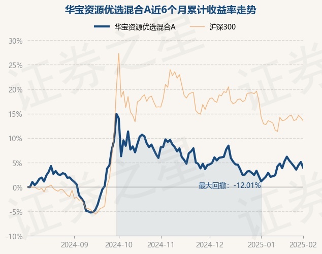 证券之星消息,2月5日,华宝资源优选混合A最新单位净值为3.258元,累计净值为3.367元,较前一交易日下跌1.12%。历史数据显示该基金近1个月上涨2.26%,近3个月下跌5.29%,近6个月上涨3.92%,近1年上涨12.34%。该基金近6个月的累计收益率走势如下图: