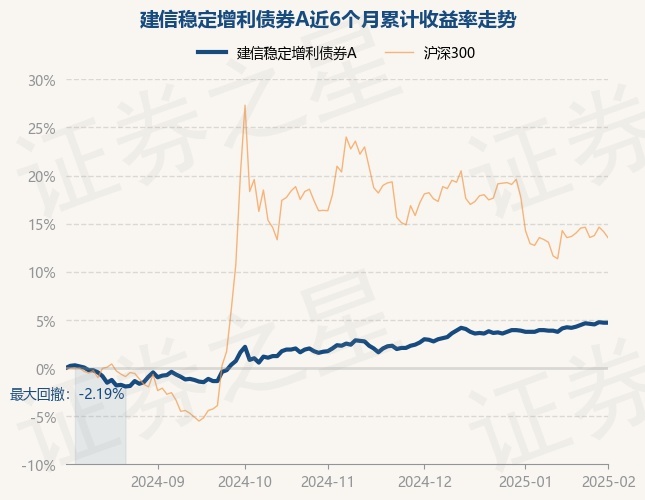 证券之星消息,2月5日,建信稳定增利债券A最新单位净值为1.771元,累计净值为2.13元,较前一交易日上涨0.0%。历史数据显示该基金近1个月上涨1.03%,近3个月上涨2.41%,近6个月上涨4.83%,近1年上涨6.96%。该基金近6个月的累计收益率走势如下图: