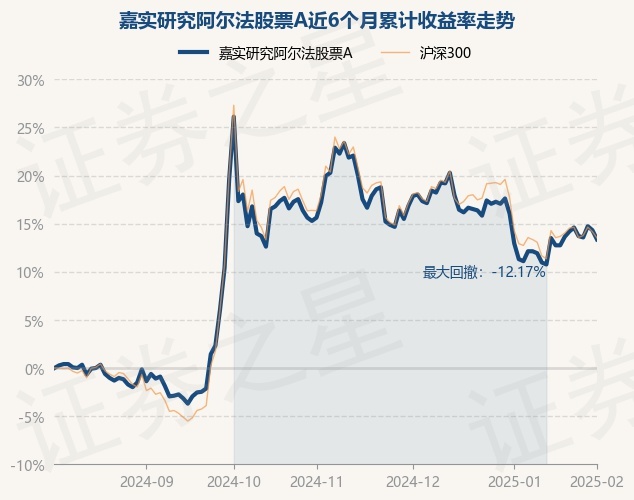 证券之星消息,2月5日,嘉实研究阿尔法股票A最新单位净值为1.654元,累计净值为2.489元,较前一交易日下跌0.84%。历史数据显示该基金近1个月上涨1.85%,近3个月下跌5.49%,近6个月上涨13.37%,近1年上涨21.17%。该基金近6个月的累计收益率走势如下图:
