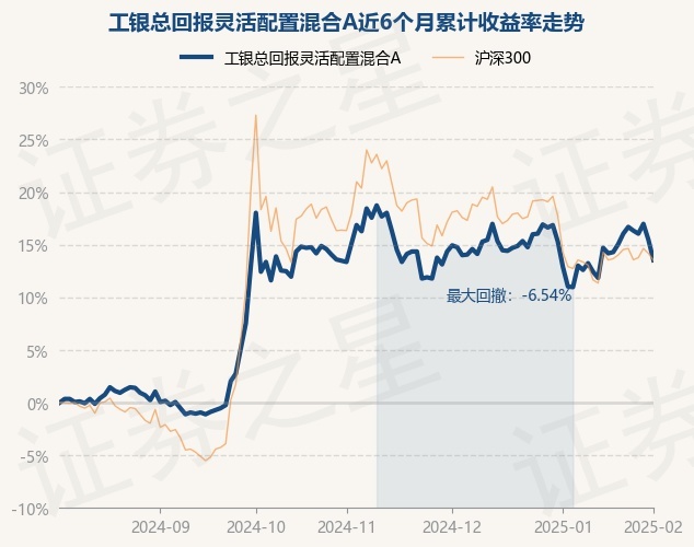 证券之星消息,2月5日,工银总回报灵活配置混合A最新单位净值为1.946元,累计净值为1.946元,较前一交易日下跌1.67%。历史数据显示该基金近1个月上涨2.26%,近3个月下跌2.85%,近6个月上涨13.54%,近1年上涨17.87%。该基金近6个月的累计收益率走势如下图: