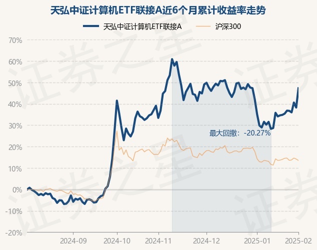 证券之星消息,2月5日,天弘中证计算机ETF联接A最新单位净值为0.7586元,累计净值为0.7586元,较前一交易日上涨6.53%。历史数据显示该基金近1个月上涨13.41%,近3个月上涨1.74%,近6个月上涨47.27%,近1年上涨51.87%。该基金近6个月的累计收益率走势如下图: