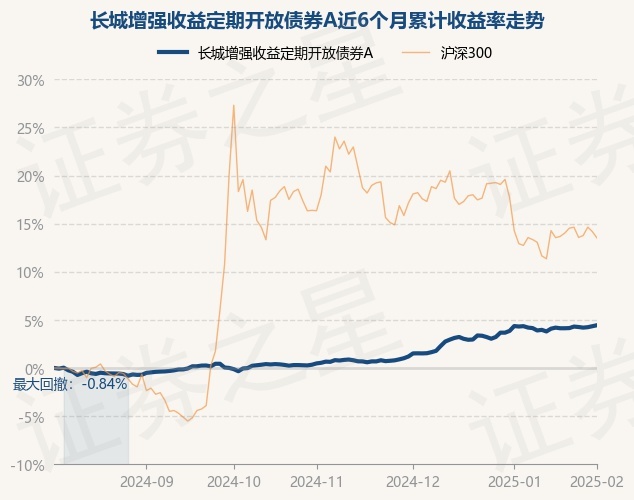证券之星消息,2月5日,长城增强收益定期开放债券A最新单位净值为1.1311元,累计净值为1.6724元,较前一交易日上涨0.1%。历史数据显示该基金近1个月上涨0.13%,近3个月上涨3.76%,近6个月上涨4.45%,近1年上涨9.58%。该基金近6个月的累计收益率走势如下图: