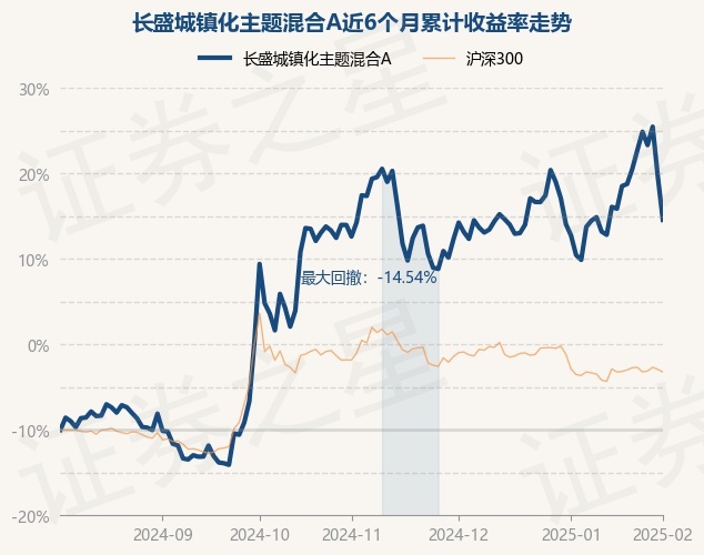 证券之星消息,2月5日,长盛城镇化主题混合A最新单位净值为1.4823元,累计净值为2.1303元,较前一交易日下跌6.4%。历史数据显示该基金近1个月上涨5.83%,近3个月下跌3.71%,近6个月上涨49.14%,近1年上涨71.88%。该基金近6个月的累计收益率走势如下图: