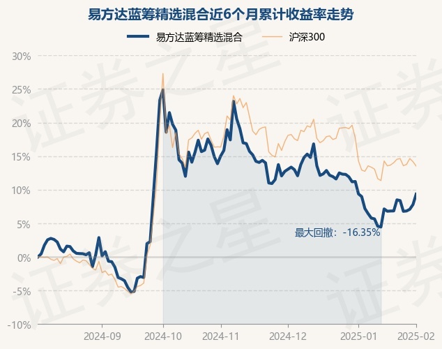 证券之星消息,2月5日,易方达蓝筹精选混合最新单位净值为1.7133元,累计净值为1.7133元,较前一交易日上涨1.44%。历史数据显示该基金近1个月上涨0.33%,近3个月下跌8.07%,近6个月上涨9.34%,近1年上涨12.0%。该基金近6个月的累计收益率走势如下图: