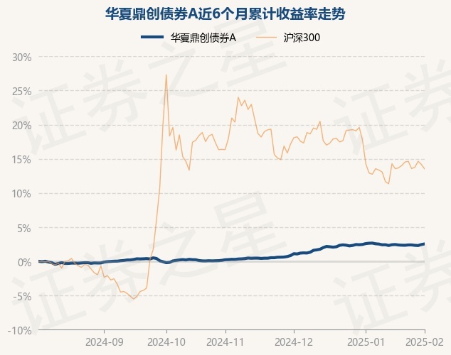 证券之星消息,2月5日,华夏鼎创债券A最新单位净值为1.0324元,累计净值为1.0684元,较前一交易日上涨0.09%。历史数据显示该基金近1个月下跌0.1%,近3个月上涨2.25%,近6个月上涨2.54%,近1年上涨5.6%。该基金近6个月的累计收益率走势如下图: