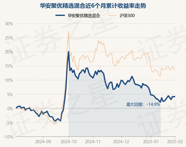 证券之星消息,2月5日,华安聚优精选混合最新单位净值为0.5944元,累计净值为0.5944元,较前一交易日上涨0.19%。历史数据显示该基金近1个月下跌0.47%,近3个月下跌7.84%,近6个月上涨4.19%,近1年上涨5.2%。该基金近6个月的累计收益率走势如下图: