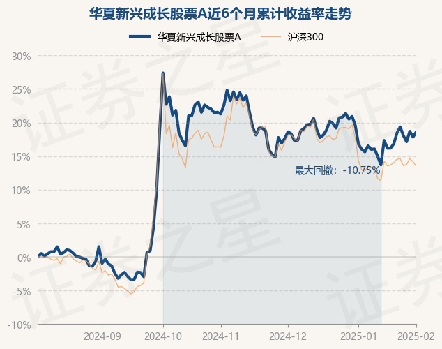 证券之星消息,2月5日,华夏新兴成长股票A最新单位净值为0.7208元,累计净值为0.7208元,较前一交易日上涨0.64%。历史数据显示该基金近1个月上涨2.21%,近3个月下跌4.98%,近6个月上涨18.59%,近1年上涨32.79%。该基金近6个月的累计收益率走势如下图: