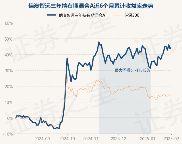 证券之星消息,2月5日,信澳智远三年持有期混合A最新单位净值为0.7695元,累计净值为0.7695元,较前一交易日上涨0.5%。历史数据显示该基金近1个月上涨9.27%,近3个月上涨4.07%,近6个月上涨44.48%,近1年上涨61.56%。该基金近6个月的累计收益率走势如下图: