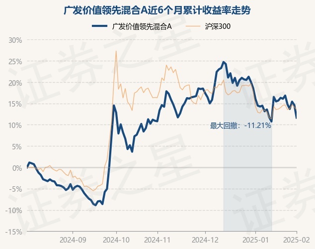 证券之星消息,2月5日,广发价值领先混合A最新单位净值为1.4179元,累计净值为1.4179元,较前一交易日下跌2.6%。历史数据显示该基金近1个月下跌2.48%,近3个月下跌2.6%,近6个月上涨11.64%,近1年上涨14.95%。该基金近6个月的累计收益率走势如下图: