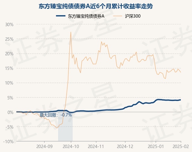 证券之星消息,2月5日,东方臻宝纯债债券A最新单位净值为3.5392元,累计净值为4.7432元,较前一交易日上涨0.06%。历史数据显示该基金近1个月下跌0.05%,近3个月上涨3.68%,近6个月上涨4.1%,近1年上涨6.64%。该基金近6个月的累计收益率走势如下图: