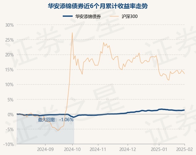 证券之星消息,2月5日,华安添锦债券最新单位净值为1.0558元,累计净值为1.0738元,较前一交易日上涨0.06%。历史数据显示该基金近1个月下跌0.25%,近3个月上涨1.58%,近6个月上涨1.36%,近1年上涨3.96%。该基金近6个月的累计收益率走势如下图: