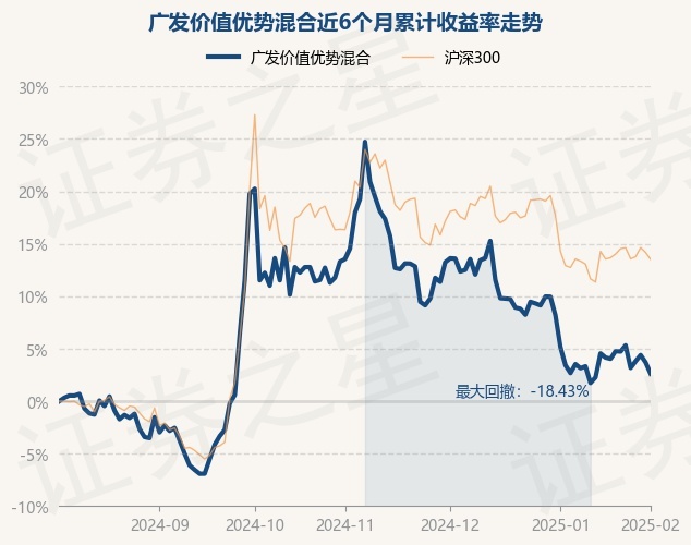 证券之星消息,2月5日,广发价值优势混合最新单位净值为1.3803元,累计净值为1.3803元,较前一交易日下跌1.04%。历史数据显示该基金近1个月下跌0.79%,近3个月下跌13.01%,近6个月上涨2.62%,近1年上涨10.3%。该基金近6个月的累计收益率走势如下图: