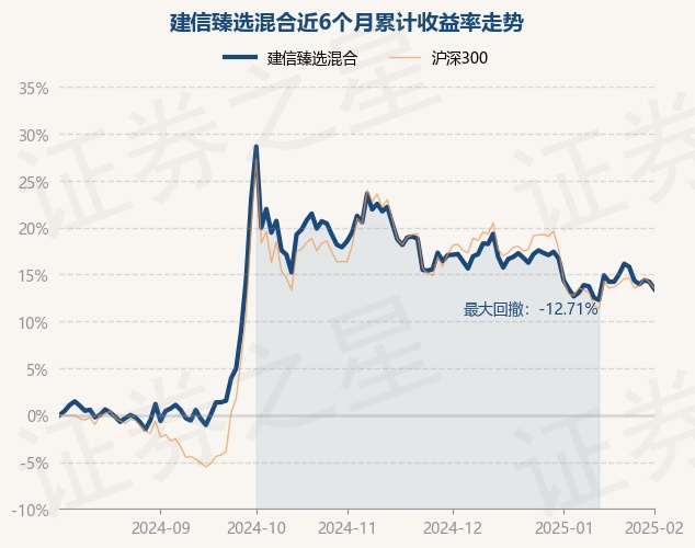 证券之星消息,2月5日,建信臻选混合最新单位净值为0.8156元,累计净值为0.8156元,较前一交易日下跌0.68%。历史数据显示该基金近1个月下跌0.02%,近3个月下跌6.45%,近6个月上涨13.44%,近1年上涨16.85%。该基金近6个月的累计收益率走势如下图: