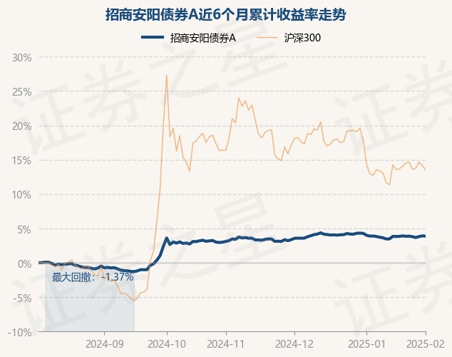 证券之星消息,2月5日,招商安阳债券A最新单位净值为1.0311元,累计净值为1.2652元,较前一交易日下跌0.04%。历史数据显示该基金近1个月下跌0.01%,近3个月上涨0.39%,近6个月上涨3.87%,近1年上涨10.56%。该基金近6个月的累计收益率走势如下图: