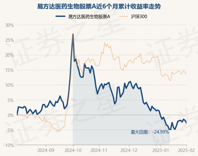 证券之星消息,2月5日,易方达医药生物股票A最新单位净值为0.5701元,累计净值为0.5701元,较前一交易日下跌0.83%。历史数据显示该基金近1个月下跌1.26%,近3个月下跌11.79%,近6个月下跌2.68%,近1年上涨10.23%。该基金近6个月的累计收益率走势如下图: