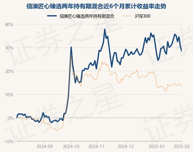 证券之星消息,2月5日,信澳匠心臻选两年持有期混合最新单位净值为0.9856元,累计净值为0.9856元,较前一交易日下跌1.6%。历史数据显示该基金近1个月上涨3.15%,近3个月下跌0.23%,近6个月上涨28.45%,近1年上涨38.43%。该基金近6个月的累计收益率走势如下图: