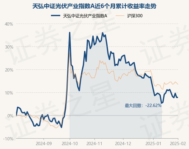 证券之星消息,2月5日,天弘中证光伏产业指数A最新单位净值为0.6152元,累计净值为0.6152元,较前一交易日下跌0.02%。历史数据显示该基金近1个月下跌0.73%,近3个月下跌19.81%,近6个月上涨7.84%,近1年上涨0.07%。该基金近6个月的累计收益率走势如下图: