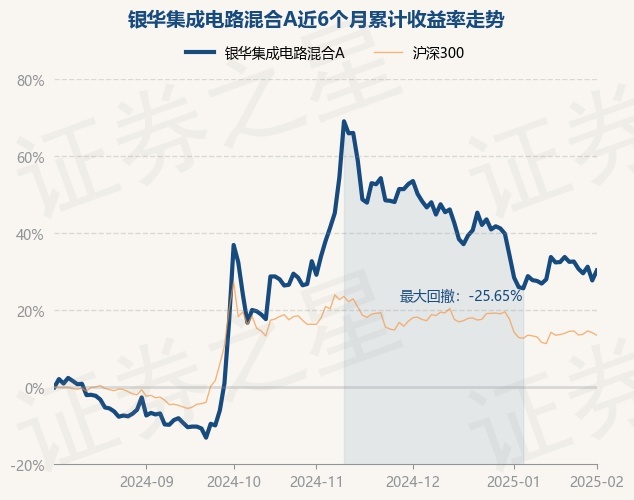 证券之星消息,2月5日,银华集成电路混合A最新单位净值为0.9733元,累计净值为0.9733元,较前一交易日上涨2.03%。历史数据显示该基金近1个月上涨3.43%,近3个月下跌5.57%,近6个月上涨30.35%,近1年上涨55.73%。该基金近6个月的累计收益率走势如下图: