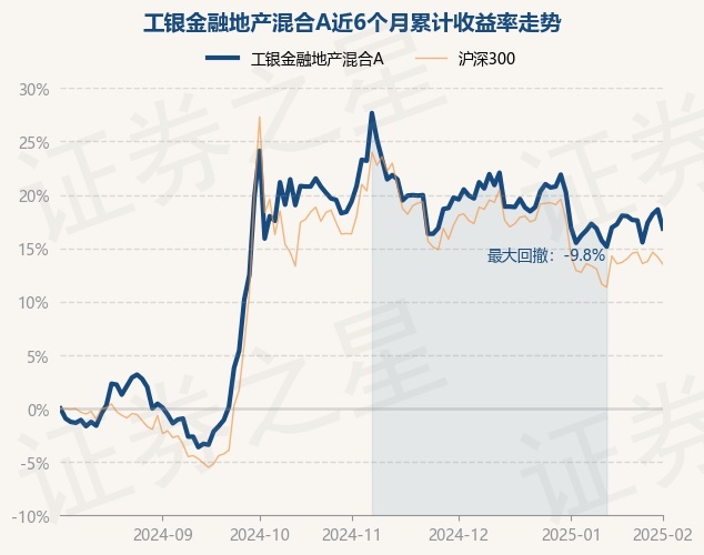 证券之星消息,2月5日,工银金融地产混合A最新单位净值为2.615元,累计净值为3.659元,较前一交易日下跌1.51%。历史数据显示该基金近1个月上涨1.16%,近3个月下跌5.22%,近6个月上涨16.85%,近1年上涨27.44%。该基金近6个月的累计收益率走势如下图:
