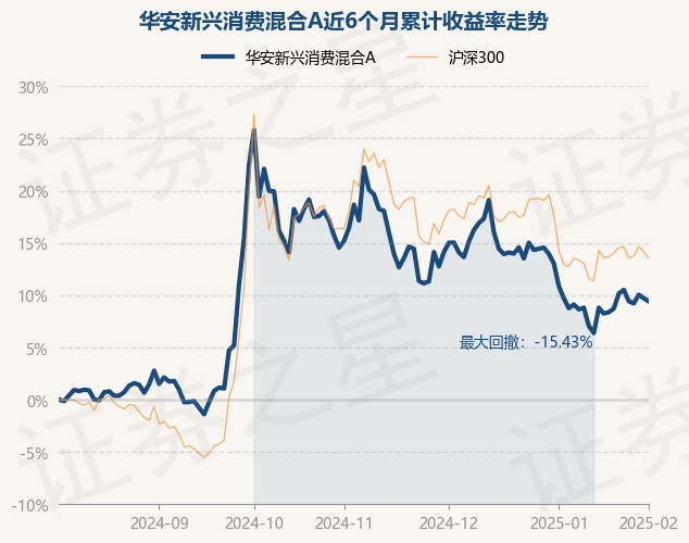 证券之星消息,2月5日,华安新兴消费混合A最新单位净值为0.4925元,累计净值为0.4925元,较前一交易日下跌0.28%。历史数据显示该基金近1个月下跌0.28%,近3个月下跌7.81%,近6个月上涨9.4%,近1年上涨7.42%。该基金近6个月的累计收益率走势如下图: