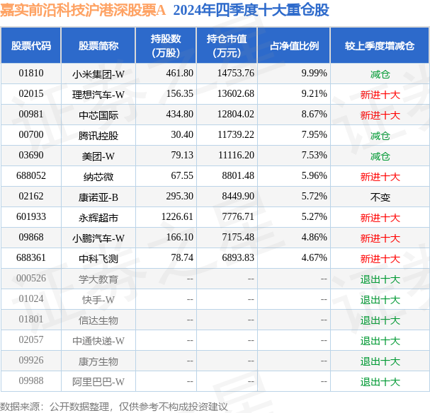 嘉实前沿科技沪港深股票A为股票型基金,根据最新一期基金季报显示,该基金资产配置:股票占净值比88.82%,债券占净值比3.56%,现金占净值比5.28%。基金十大重仓股如下: