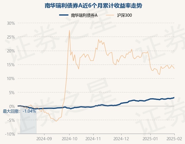 证券之星消息,2月5日,南华瑞利债券A最新单位净值为1.0686元,累计净值为1.4416元,较前一交易日上涨0.19%。历史数据显示该基金近1个月上涨0.45%,近3个月上涨2.91%,近6个月上涨3.04%,近1年上涨5.56%。该基金近6个月的累计收益率走势如下图: