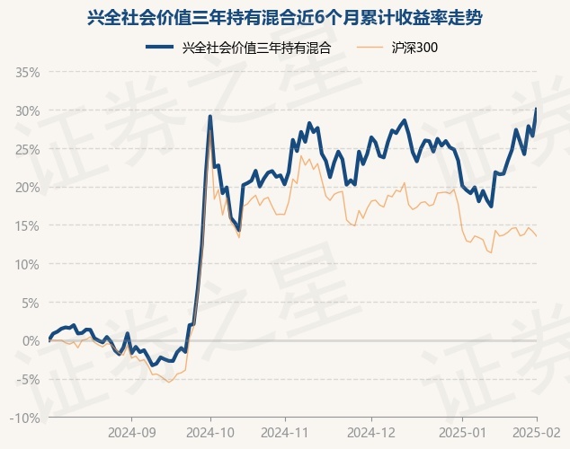 证券之星消息,2月5日,兴全社会价值三年持有混合最新单位净值为1.4542元,累计净值为1.4542元,较前一交易日上涨2.73%。历史数据显示该基金近1个月上涨8.79%,近3个月上涨3.14%,近6个月上涨30.03%,近1年上涨40.33%。该基金近6个月的累计收益率走势如下图: