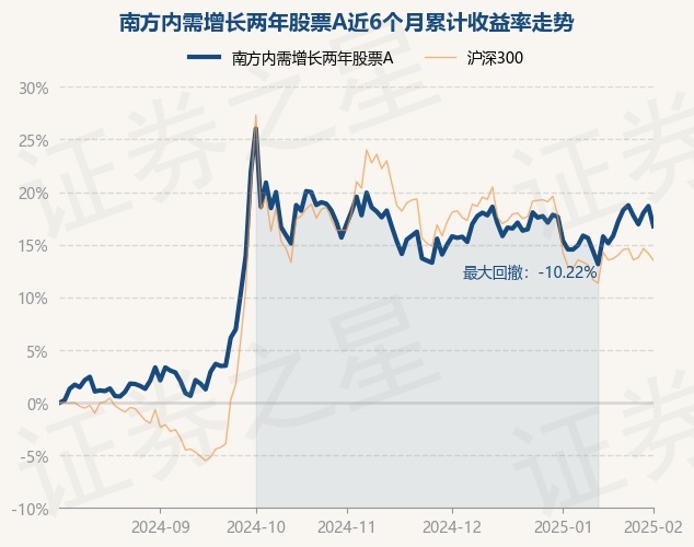 证券之星消息,2月5日,南方内需增长两年股票A最新单位净值为0.9057元,累计净值为0.9057元,较前一交易日下跌1.61%。历史数据显示该基金近1个月上涨1.92%,近3个月下跌2.34%,近6个月上涨16.76%,近1年上涨21.13%。该基金近6个月的累计收益率走势如下图:
