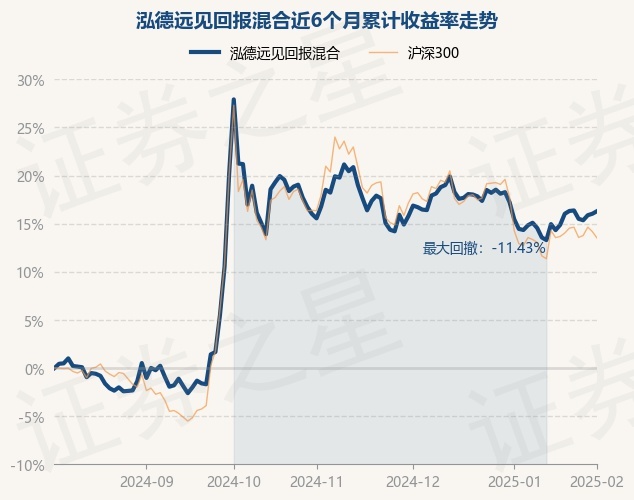 证券之星消息,2月5日,泓德远见回报混合最新单位净值为1.5301元,累计净值为1.9641元,较前一交易日上涨0.23%。历史数据显示该基金近1个月上涨1.61%,近3个月下跌1.87%,近6个月上涨16.3%,近1年上涨24.1%。该基金近6个月的累计收益率走势如下图: