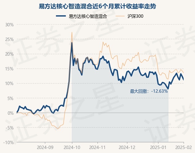 易方达核心智造混合为混合型-偏股基金,根据最新一期基金季报显示,该基金资产配置:股票占净值比89.22%,无债券类资产,现金占净值比11.63%。基金十大重仓股如下: