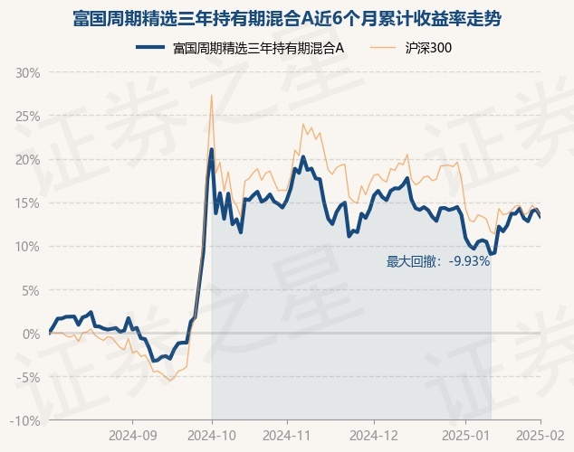 证券之星消息,2月5日,富国周期精选三年持有期混合A最新单位净值为0.8913元,累计净值为0.8913元,较前一交易日下跌0.7%。历史数据显示该基金近1个月上涨3.04%,近3个月下跌4.62%,近6个月上涨13.35%,近1年上涨25.62%。该基金近6个月的累计收益率走势如下图: