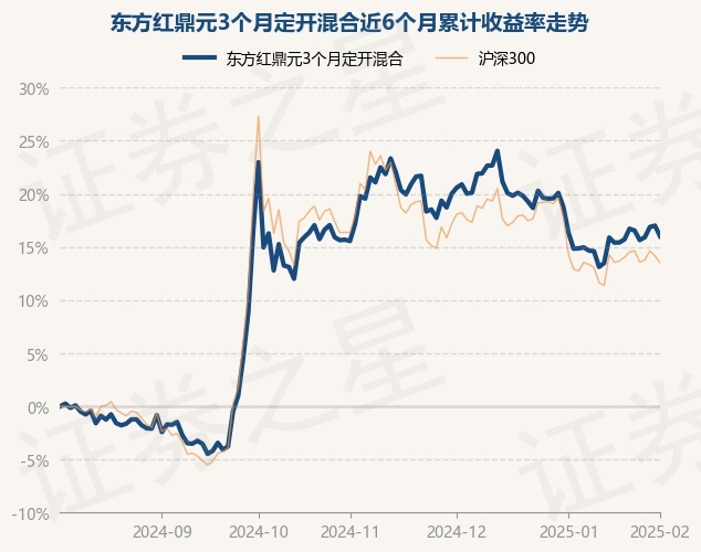 证券之星消息,2月5日,东方红鼎元3个月定开混合最新单位净值为0.9225元,累计净值为0.9225元,较前一交易日下跌0.85%。历史数据显示该基金近1个月上涨1.03%,近3个月下跌3.15%,近6个月上涨16.01%,近1年上涨24.65%。该基金近6个月的累计收益率走势如下图:
