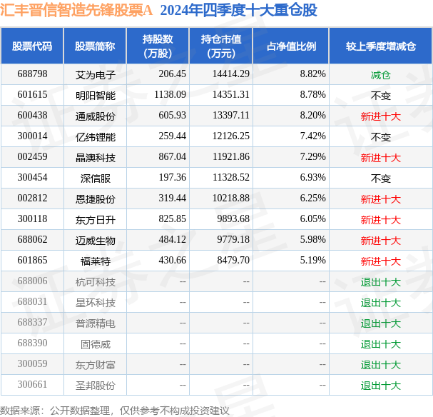 汇丰晋信智造先锋股票A为股票型基金,根据最新一期基金季报显示,该基金资产配置:股票占净值比94.33%,债券占净值比0.5%,现金占净值比5.86%。基金十大重仓股如下: