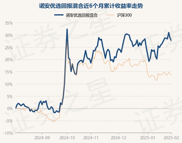 证券之星消息,2月5日,诺安优选回报混合最新单位净值为1.696元,累计净值为1.946元,较前一交易日下跌0.88%。历史数据显示该基金近1个月上涨7.07%,近3个月上涨3.23%,近6个月上涨27.61%,近1年上涨35.14%。该基金近6个月的累计收益率走势如下图:
