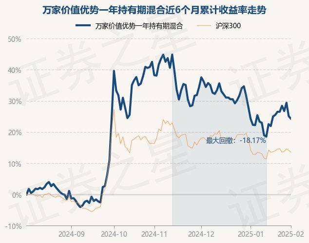 证券之星消息,2月5日,万家价值优势一年持有期混合最新单位净值为1.5586元,累计净值为1.5586元,较前一交易日下跌0.63%。历史数据显示该基金近1个月上涨1.61%,近3个月下跌12.25%,近6个月上涨24.3%,近1年上涨53.5%。该基金近6个月的累计收益率走势如下图: