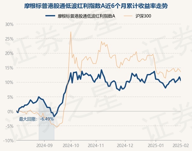 证券之星消息,2月5日,摩根标普港股通低波红利指数A最新单位净值为1.0065元,累计净值为1.0065元,较前一交易日下跌1.06%。历史数据显示该基金近1个月下跌0.36%,近3个月下跌1.85%,近6个月上涨10.57%,近1年上涨21.24%。该基金近6个月的累计收益率走势如下图: