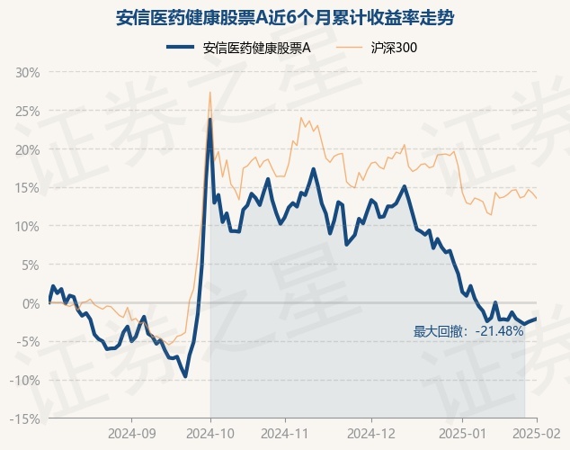 证券之星消息,2月5日,安信医药健康股票A最新单位净值为0.8599元,累计净值为0.9179元,较前一交易日上涨0.2%。历史数据显示该基金近1个月下跌2.96%,近3个月下跌13.32%,近6个月下跌2.14%,近1年下跌6.32%。该基金近6个月的累计收益率走势如下图: