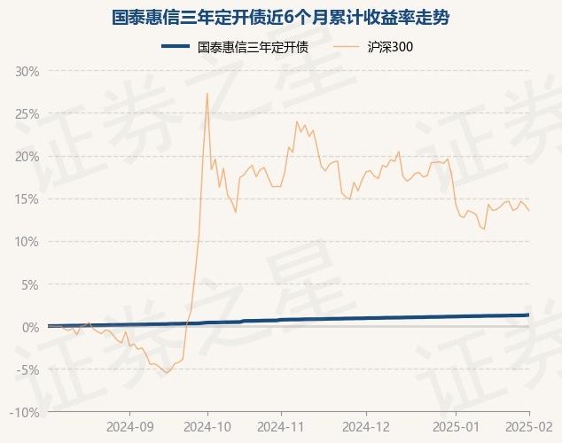 证券之星消息,2月5日,国泰惠信三年定开债最新单位净值为1.0055元,累计净值为1.1414元,较前一交易日上涨0.05%。历史数据显示该基金近1个月上涨0.18%,近3个月上涨0.55%,近6个月上涨1.31%,近1年上涨2.44%。该基金近6个月的累计收益率走势如下图: