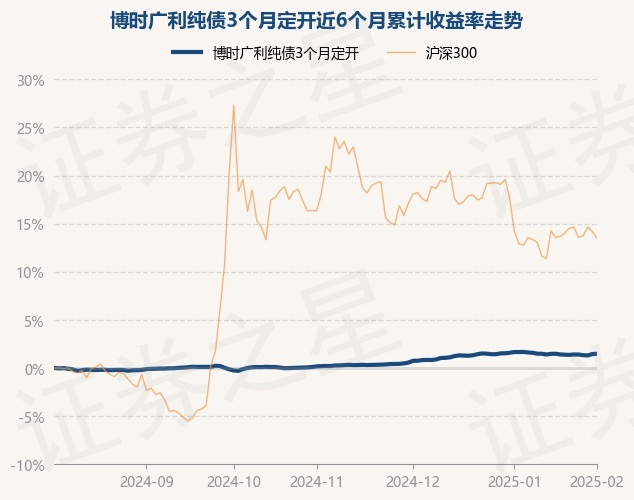 证券之星消息,2月5日,博时广利纯债3个月定开最新单位净值为1.0326元,累计净值为1.3195元,较前一交易日上涨0.03%。历史数据显示该基金近1个月下跌0.17%,近3个月上涨1.27%,近6个月上涨1.49%,近1年上涨3.89%。该基金近6个月的累计收益率走势如下图:
