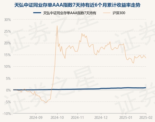 证券之星消息,2月5日,天弘中证同业存单AAA指数7天持有最新单位净值为1.0482元,累计净值为1.0482元,较前一交易日上涨0.04%。历史数据显示该基金近1个月上涨0.04%,近3个月上涨0.6%,近6个月上涨0.9%,近1年上涨2.19%。该基金近6个月的累计收益率走势如下图: