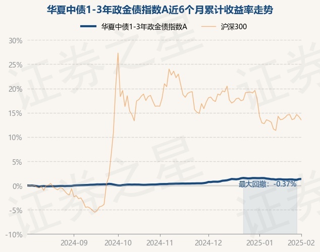 证券之星消息,2月5日,华夏中债1-3年政金债指数A最新单位净值为1.0245元,累计净值为1.1865元,较前一交易日上涨0.03%。历史数据显示该基金近1个月下跌0.19%,近3个月上涨1.05%,近6个月上涨1.34%,近1年上涨3.65%。该基金近6个月的累计收益率走势如下图: