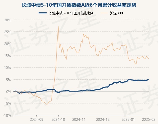 证券之星消息,2月5日,长城中债5-10年国开债指数A最新单位净值为1.2075元,累计净值为1.2075元,较前一交易日上涨0.19%。历史数据显示该基金近1个月上涨0.18%,近3个月上涨4.75%,近6个月上涨4.99%,近1年上涨10.55%。该基金近6个月的累计收益率走势如下图: