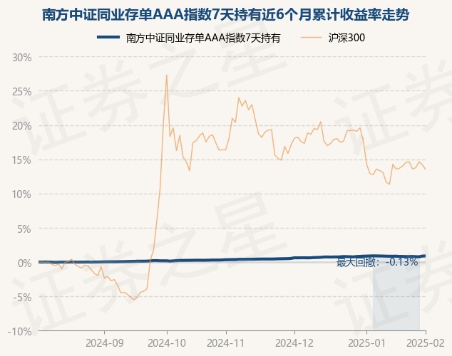 证券之星消息,2月5日,南方中证同业存单AAA指数7天持有最新单位净值为1.0721元,累计净值为1.0721元,较前一交易日上涨0.03%。历史数据显示该基金近1个月上涨0.01%,近3个月上涨0.53%,近6个月上涨0.89%,近1年上涨2.12%。该基金近6个月的累计收益率走势如下图: