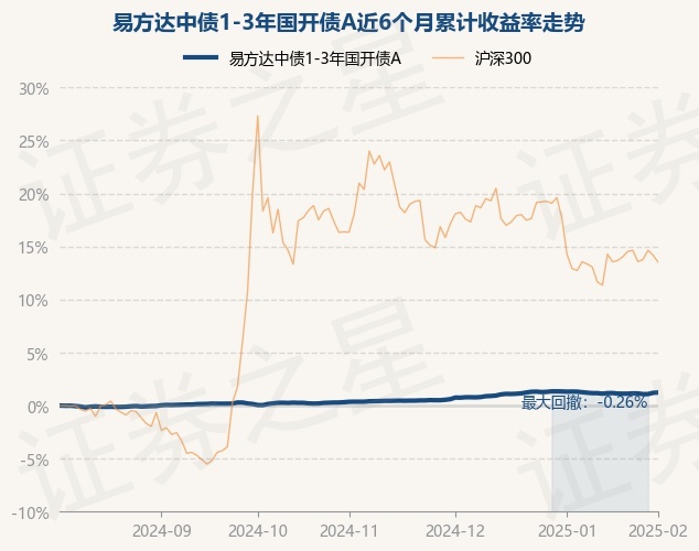 证券之星消息,2月5日,易方达中债1-3年国开债A最新单位净值为1.0085元,累计净值为1.1862元,较前一交易日上涨0.03%。历史数据显示该基金近1个月下跌0.09%,近3个月上涨0.86%,近6个月上涨1.23%,近1年上涨3.37%。该基金近6个月的累计收益率走势如下图: