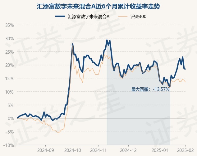 证券之星消息,2月5日,汇添富数字未来混合A最新单位净值为0.613元,累计净值为0.613元,较前一交易日下跌0.24%。历史数据显示该基金近1个月上涨4.29%,近3个月下跌4.31%,近6个月上涨18.32%,近1年上涨26.68%。该基金近6个月的累计收益率走势如下图: