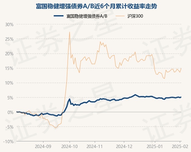 证券之星消息,2月6日,富国稳健增强债券A/B最新单位净值为1.29元,累计净值为1.715元,较前一交易日上涨0.16%。历史数据显示该基金近1个月上涨0.39%,近3个月上涨0.94%,近6个月上涨5.05%,近1年上涨6.7%。该基金近6个月的累计收益率走势如下图:
