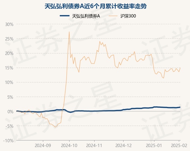 证券之星消息,2月6日,天弘弘利债券A最新单位净值为1.1194元,累计净值为1.5818元,较前一交易日上涨0.08%。历史数据显示该基金近1个月下跌0.07%,近3个月上涨1.33%,近6个月上涨1.37%,近1年上涨6.13%。该基金近6个月的累计收益率走势如下图: