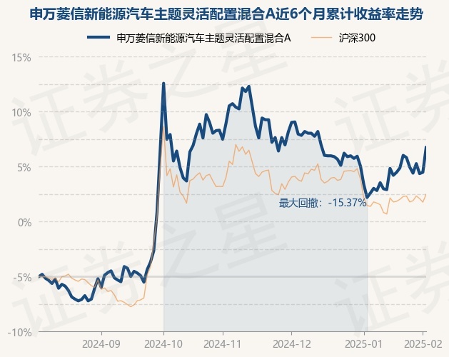 证券之星消息,2月6日,申万菱信新能源汽车主题灵活配置混合A最新单位净值为1.563元,累计净值为2.553元,较前一交易日上涨3.78%。历史数据显示该基金近1个月上涨7.2%,近3个月下跌6.07%,近6个月上涨23.46%,近1年上涨27.07%。该基金近6个月的累计收益率走势如下图: