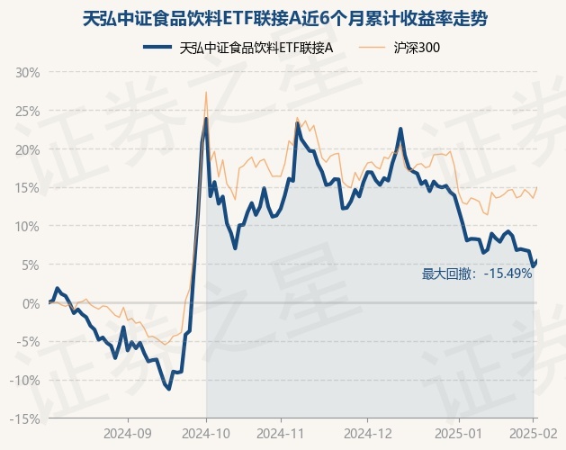 证券之星消息,2月6日,天弘中证食品饮料ETF联接A最新单位净值为2.1008元,累计净值为2.1789元,较前一交易日上涨0.67%。历史数据显示该基金近1个月下跌2.48%,近3个月下跌9.0%,近6个月上涨5.35%,近1年下跌3.04%。该基金近6个月的累计收益率走势如下图: